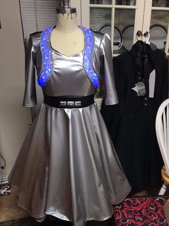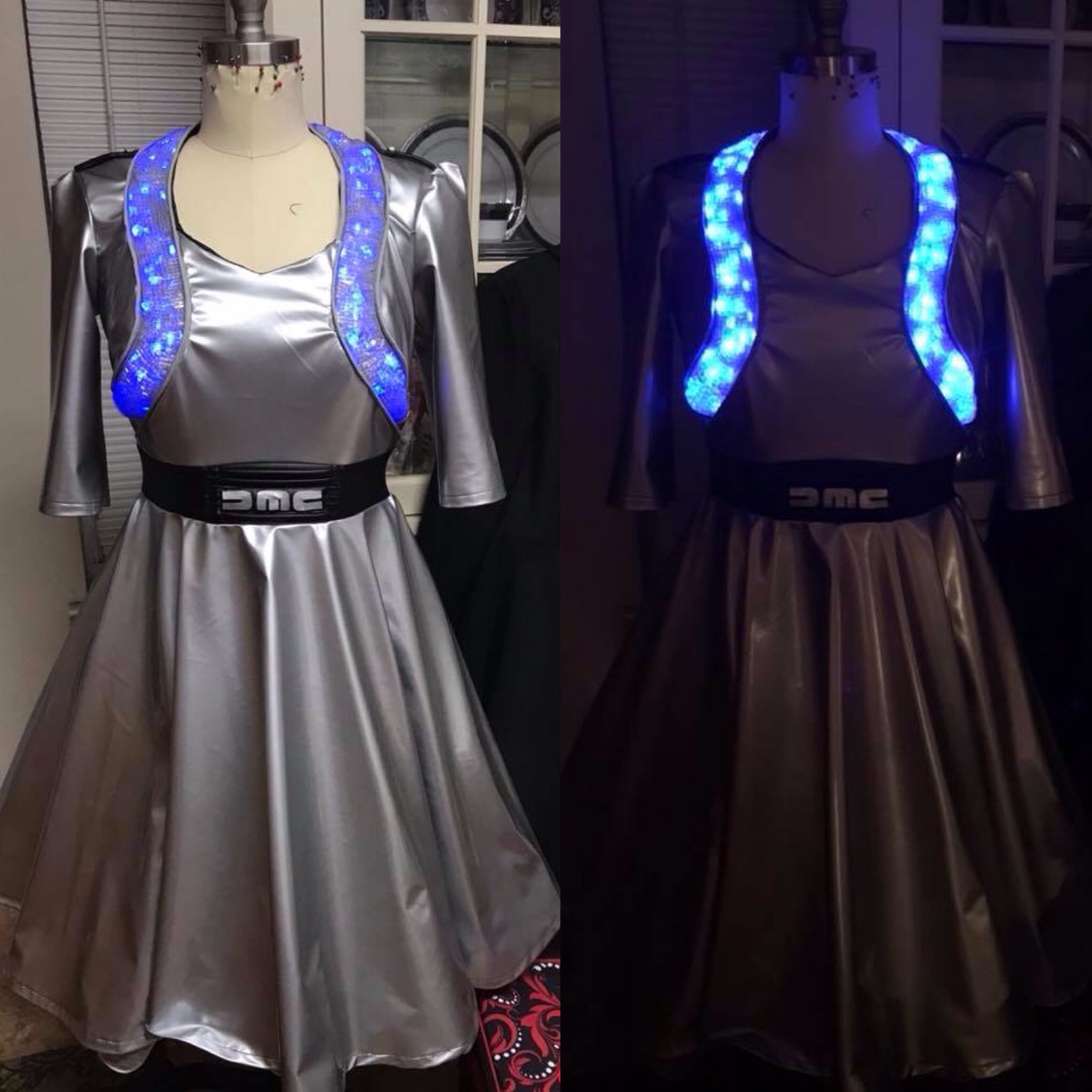 A fun last minute dress idea I had was to make one inspired by the DeLorean from Back to the Future! Plus I wanted it to light up! I Never worked with lights before in clothing, so there was a lot of misses before the final product!