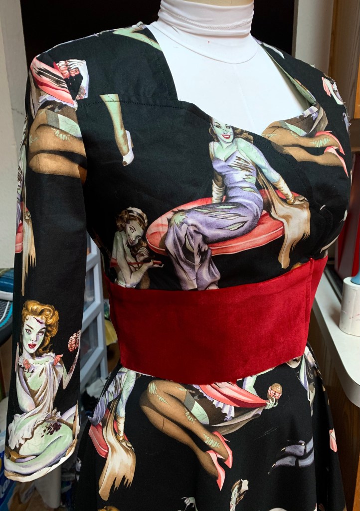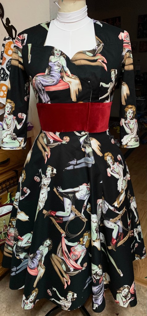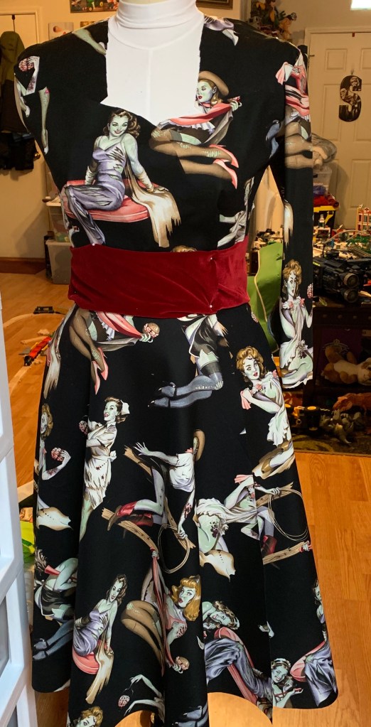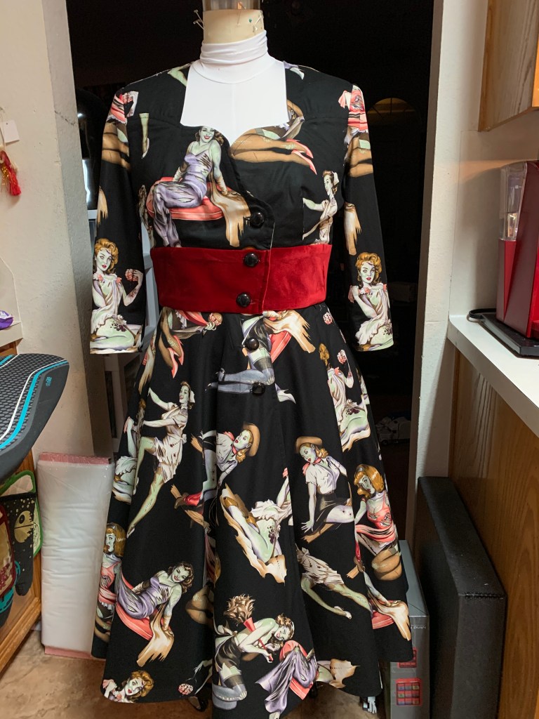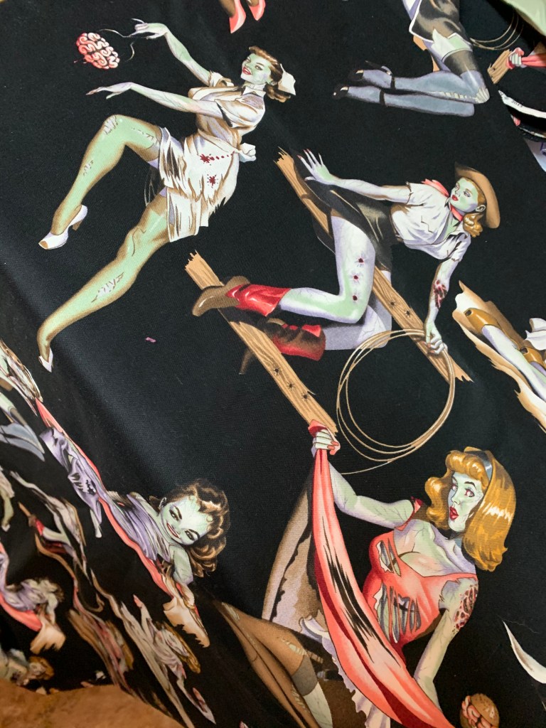 Another fun pandemic lockdown project I did was this halloween pin up zombie dress. I fell in love with this fabric and had to make a cute dress out of it!